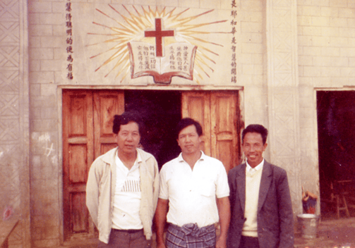 1990年 教会主任牧师 王兴苍牧师、邹德相执事和赵其金执事合影
